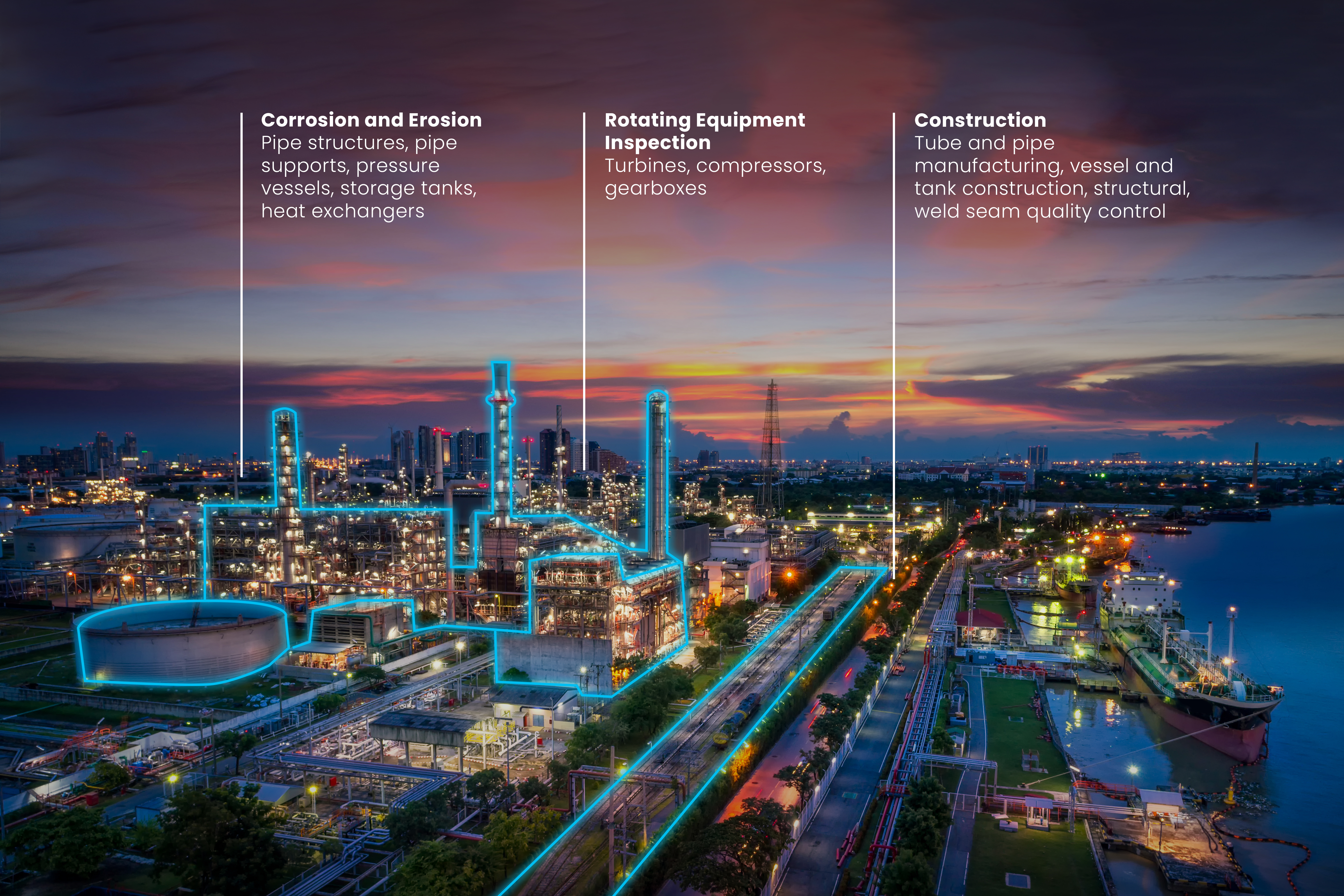 공장, 파이프라인, 터보 기계 등의 복잡한 장비에는 다양한 수준의 서비스와 NDT 솔루션이 필요합니다.