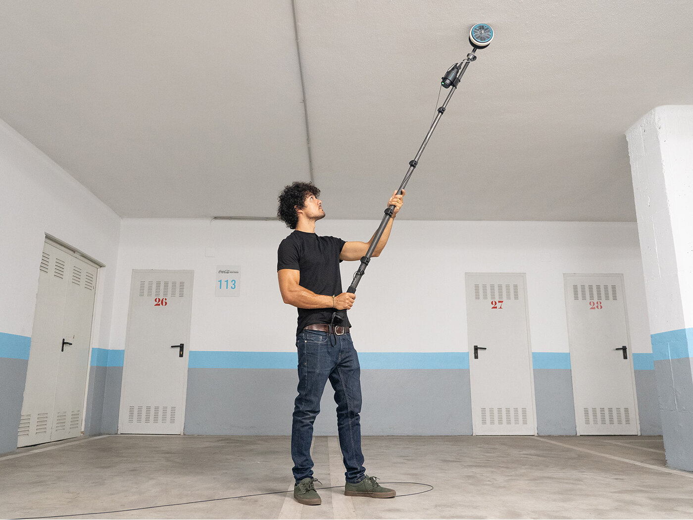 One-Wheel Electrode를 사용하여 벽이나 지붕과 같은 더 큰 수직 및 머리 위 영역을 스캔합니다.