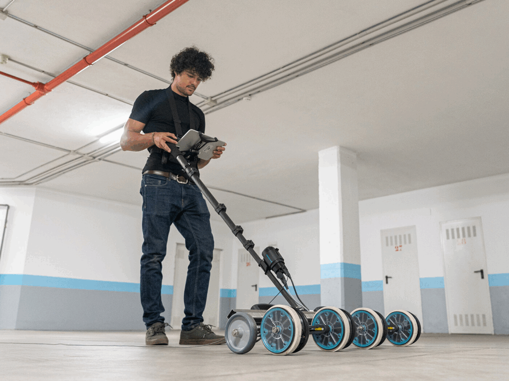 4륜 전극을 사용하여 슬래브, 주차장 및 교량 데크와 같은 넓은 수평 영역을 스캔합니다.